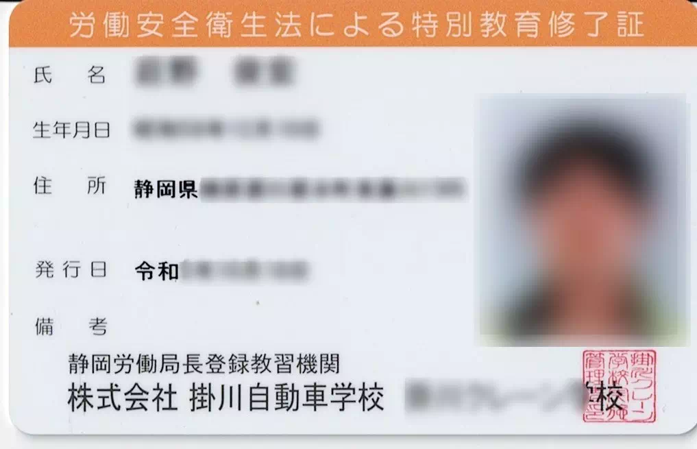 また、防草・防虫に係わる庭整備として作業にはユンボ【パワーショベル】を使用した作業を行っていますが、車両系建設機器3t未満の講習を修了しています。